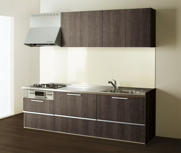 キッチン:クリナップ ラクエラ・シンシアシリーズ 2550mm ガスコンロ付き 吊戸H=500mm